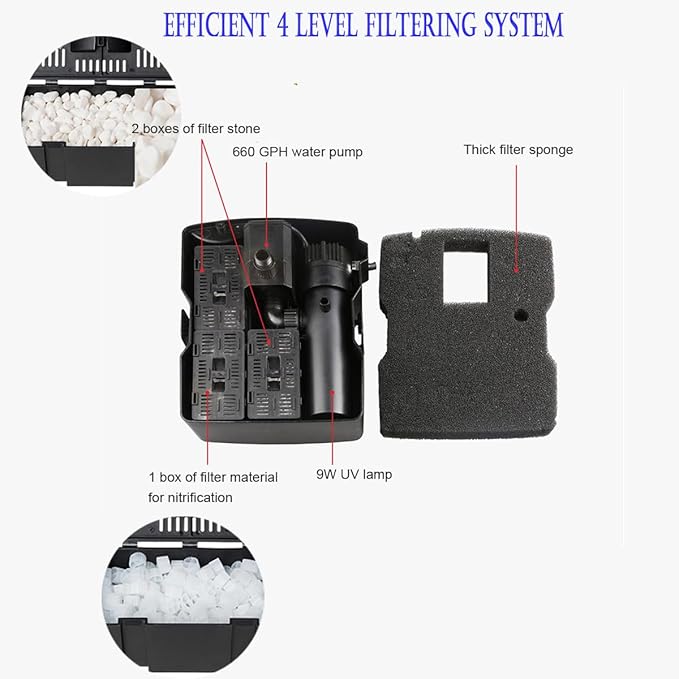 - PREMIUM FILTER MATERIALS - Benefit from the double filter area per unit volume provided by the filter sponge and bio-balls. This not only improves water clarity in your water garden but also reduces maintenance efforts.