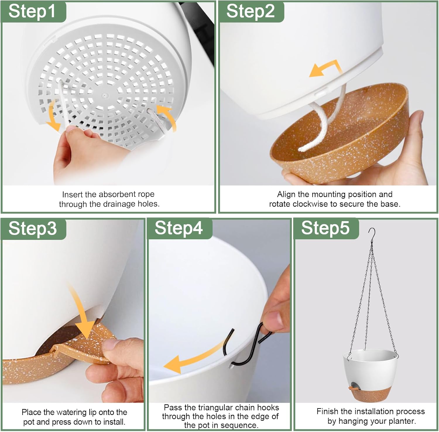 - Water Reservoir with Removable Tray - Water storage up to 7-14 days. Our hanging plant pots come equipped with a removable tray that doubles as a water reservoir, ensuring your plants are watered for up to two weeks while you are away.