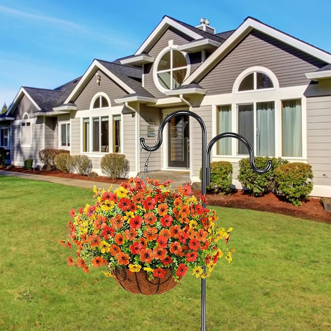 - UV-Resistant: Don't worry about fading – these artificial hanging outdoor flowers are UV-resistant to keep their vibrancy in the sun.