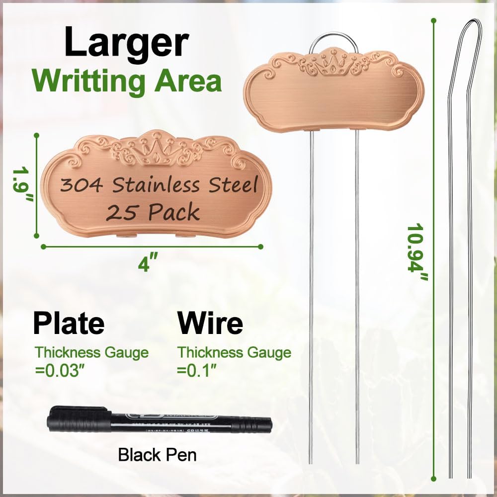 - Durable Stainless Steel Plant Labels Outdoor: TCYPUHL Metal Plant Labels are constructed from high-quality 25 Pack stainless steel, ensuring long-lasting durability and resistance to rust, making them ideal for outdoor use in any weather.Garden Labels are fully waterproof, protecting your plant labels from water damage and ensuring clear identification of your plants even during rainy days or watering sessions.