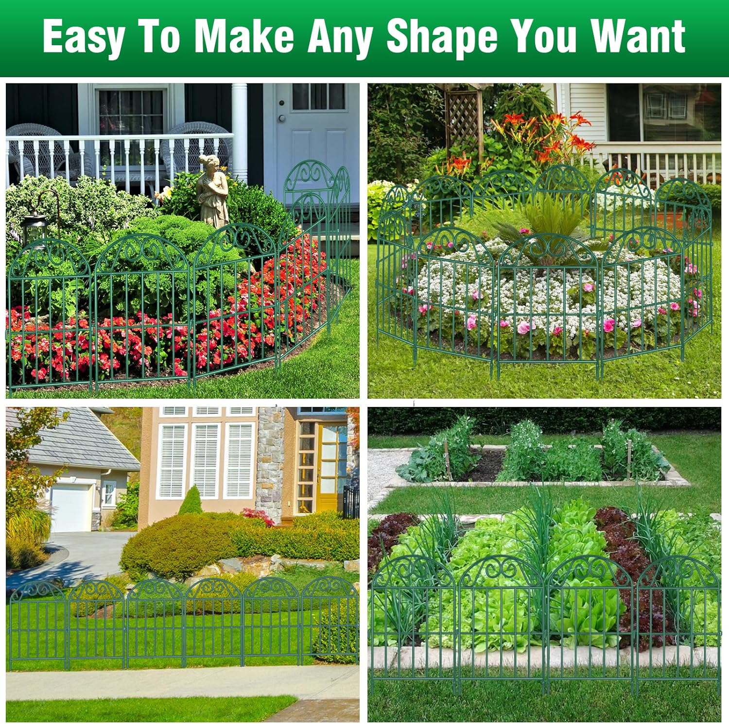 - Easy to Install and Move: Assembled by Unfolding The Spikes into The Soil. These Metal Panels are Connected by Hooks. Can be Assembled into Different Shapes You Need, Such as Straight Line, "L" Shape, "O" Shape and So on. It Can also be Easily Disassembled, Allowing You to Easily Create A Beautiful Garden Fence without The Tedious Installation Process