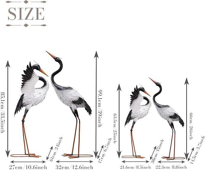 - 【Original Design】These metal crane statues feature a beautiful blue color that glimmer in the sunlight, adding a lovely touch to any decor
