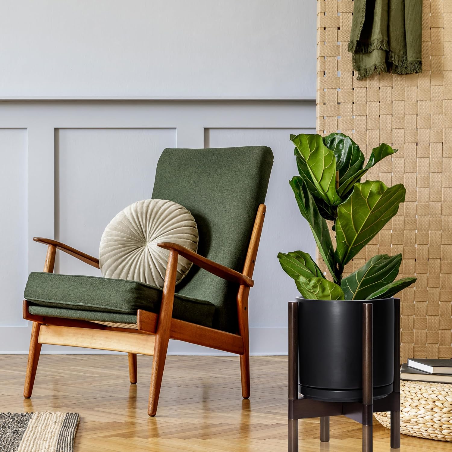- A Complete Set: Mid-century ceramic planter, combined with a sculptural, solid wood stand that match perfectly together and looks great in anywhere.