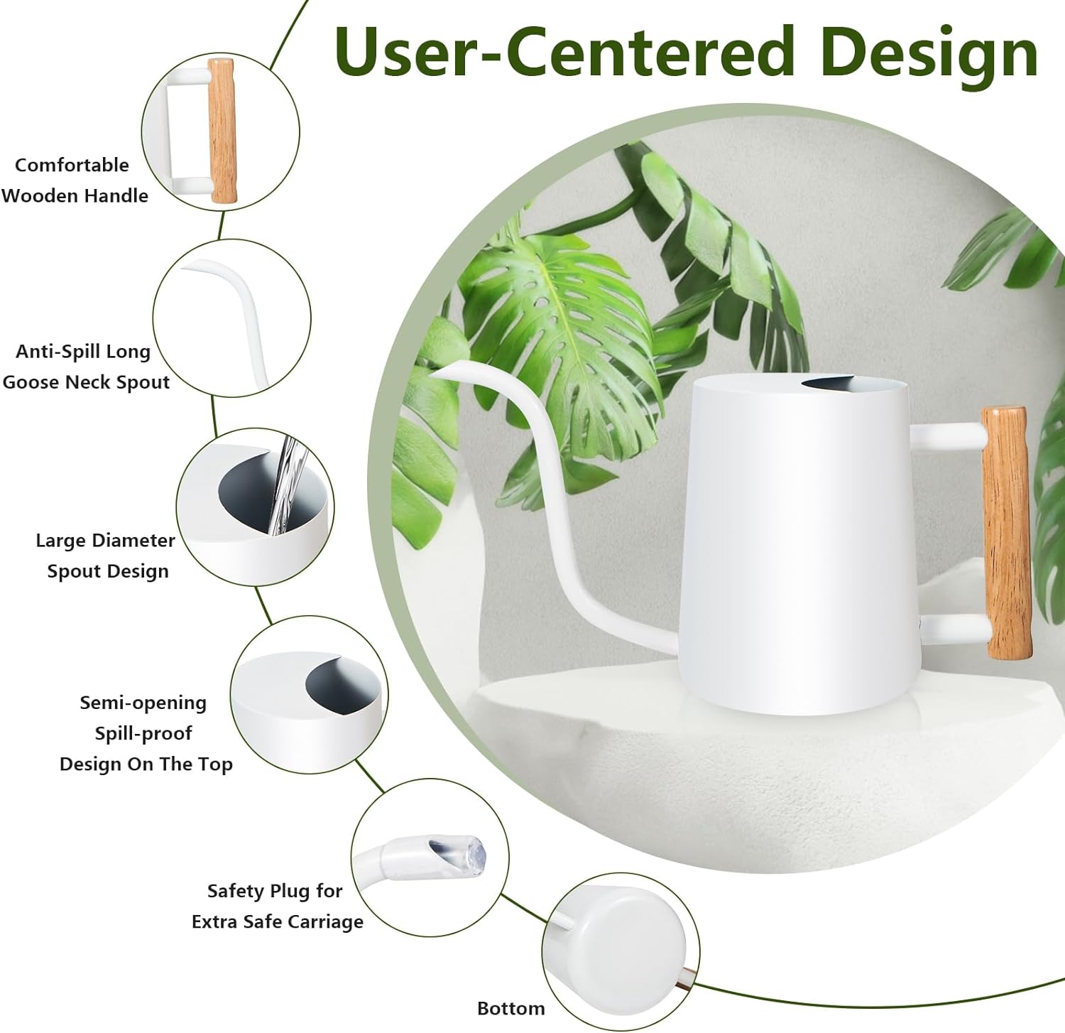 - Decorative & Functional - Our watering can is not limited to just indoor plants, it can be used for outdoor gardening. Small watering can has a variety of color choices. Just perfect for watering small house plants, hanging plants, tabletop bonsai, potted plants, small cactus. The modern, simple design fits any decor and looks great on display. With a exquisite and light watering can body and real wooden handle, this watering pot serves as a decoration as well