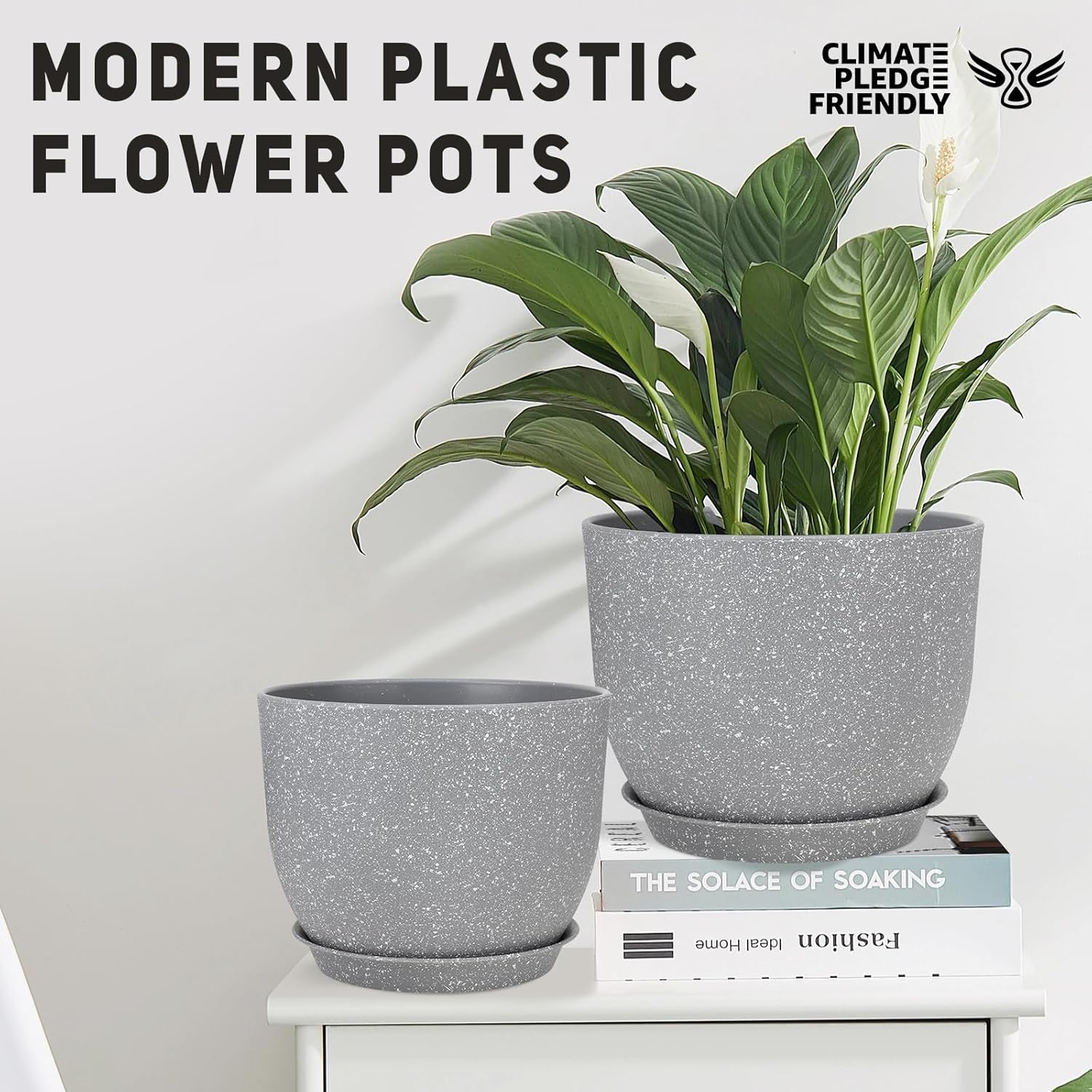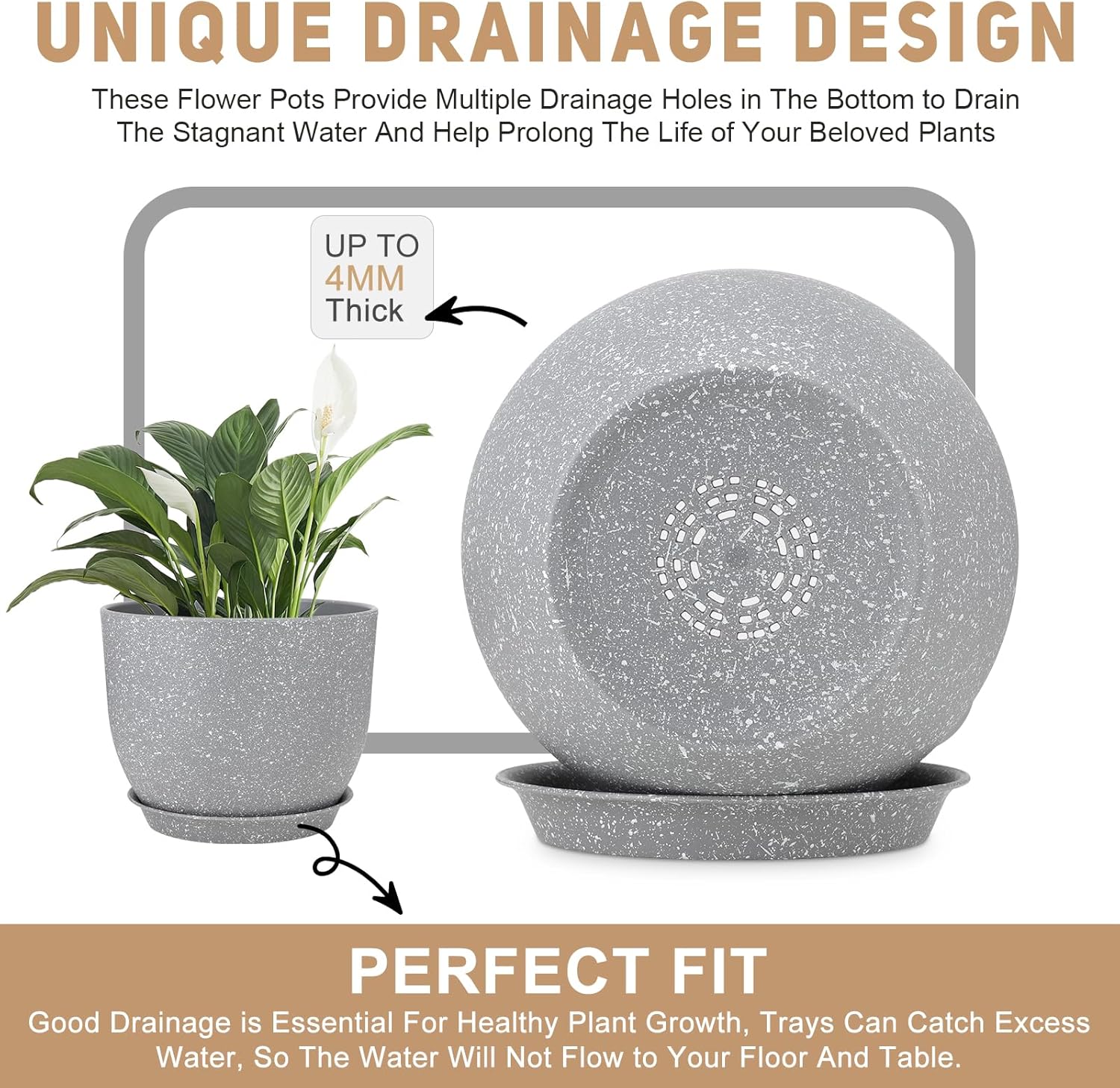 - [ STURDY PLASTIC LIGHTWEIGHT] -Plastic plant pots are made by 6.5mm PP materials. It’s lightweight, durable, sturdy plastic with a matte exterior finish for a clean modern look.