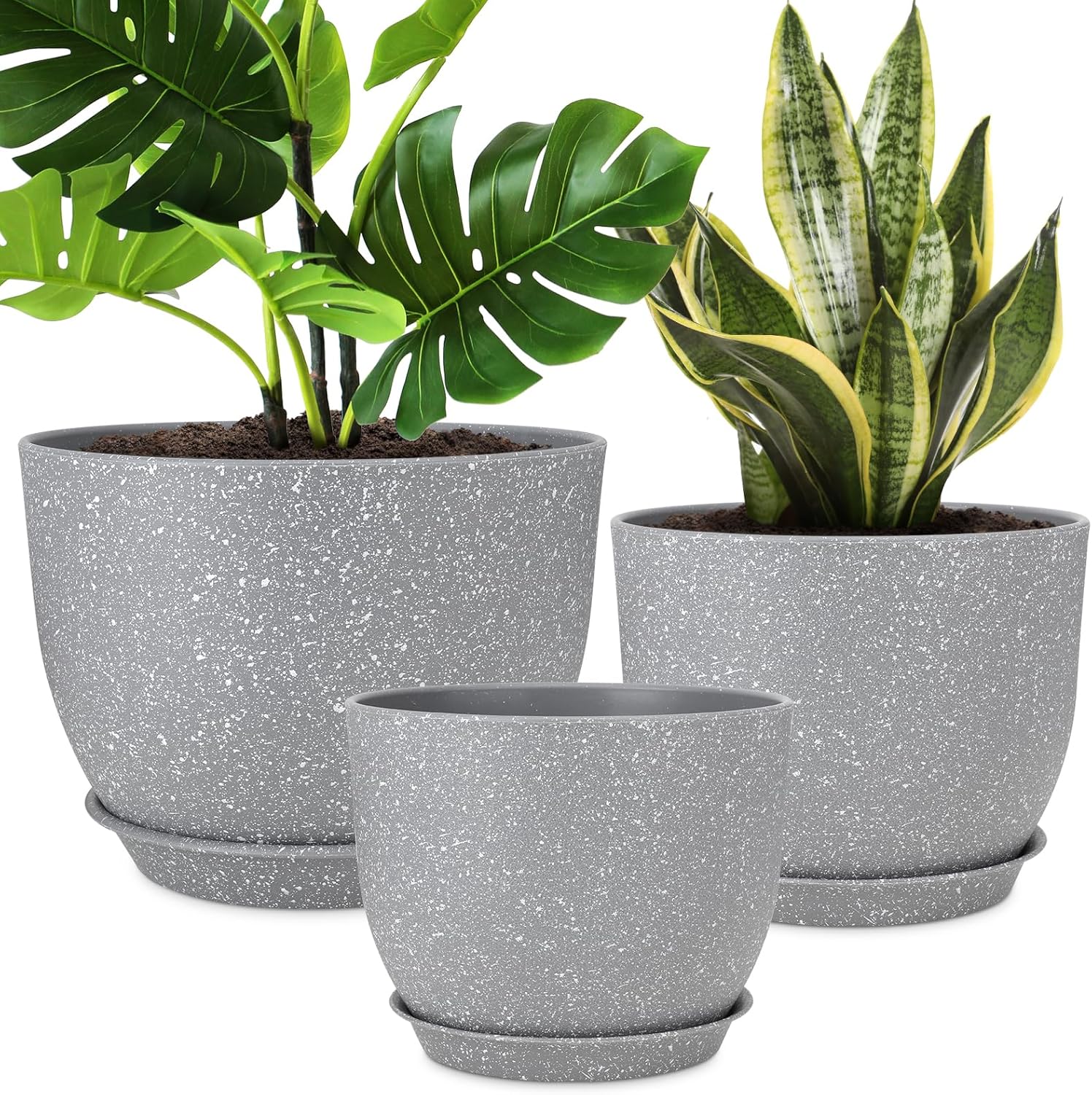 Plant Pots 12/10/9 inch Set of 3, Flower Pots with Multi Mesh Drainage Holes, Large Planters for Indoor Outdoor Garden Plants and Flowers. (Gray)