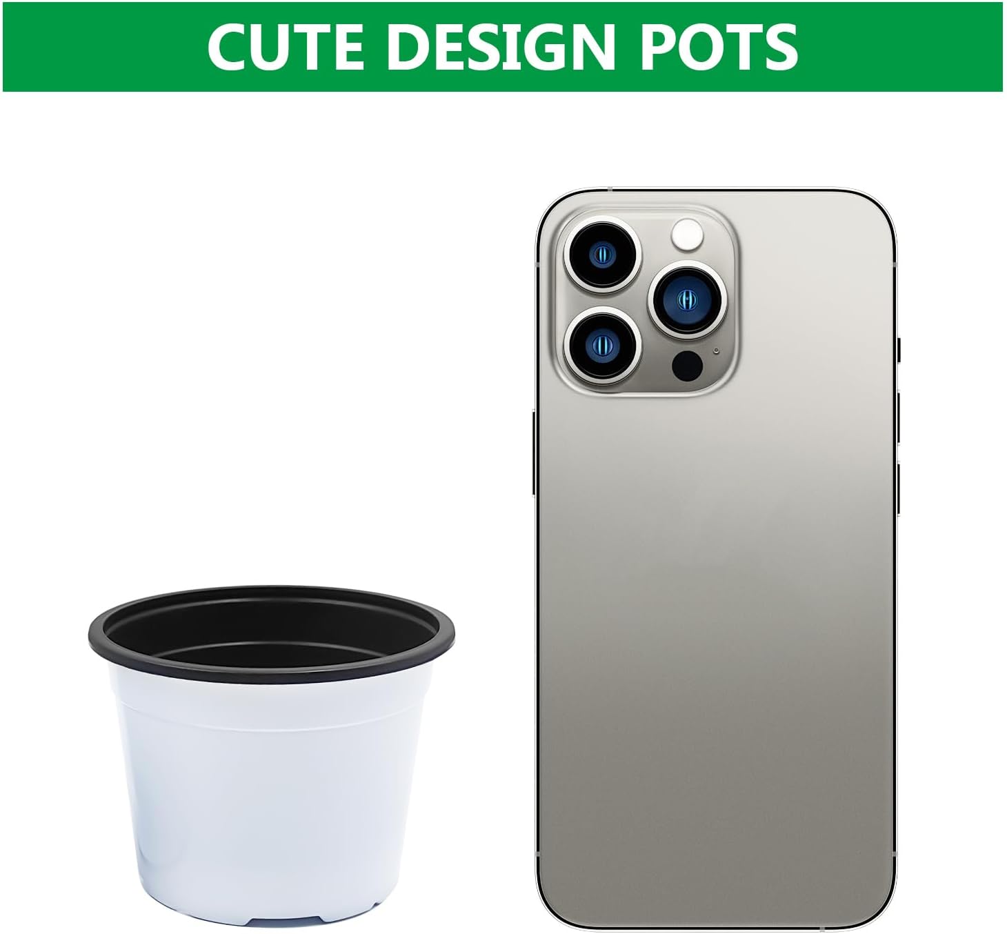 Nursery Pots, 100 Pack 2.8 inch Plastic Plant Pots, Small Flower Pots for Succulents, Seedlings, Flowers, Transplanting(White)