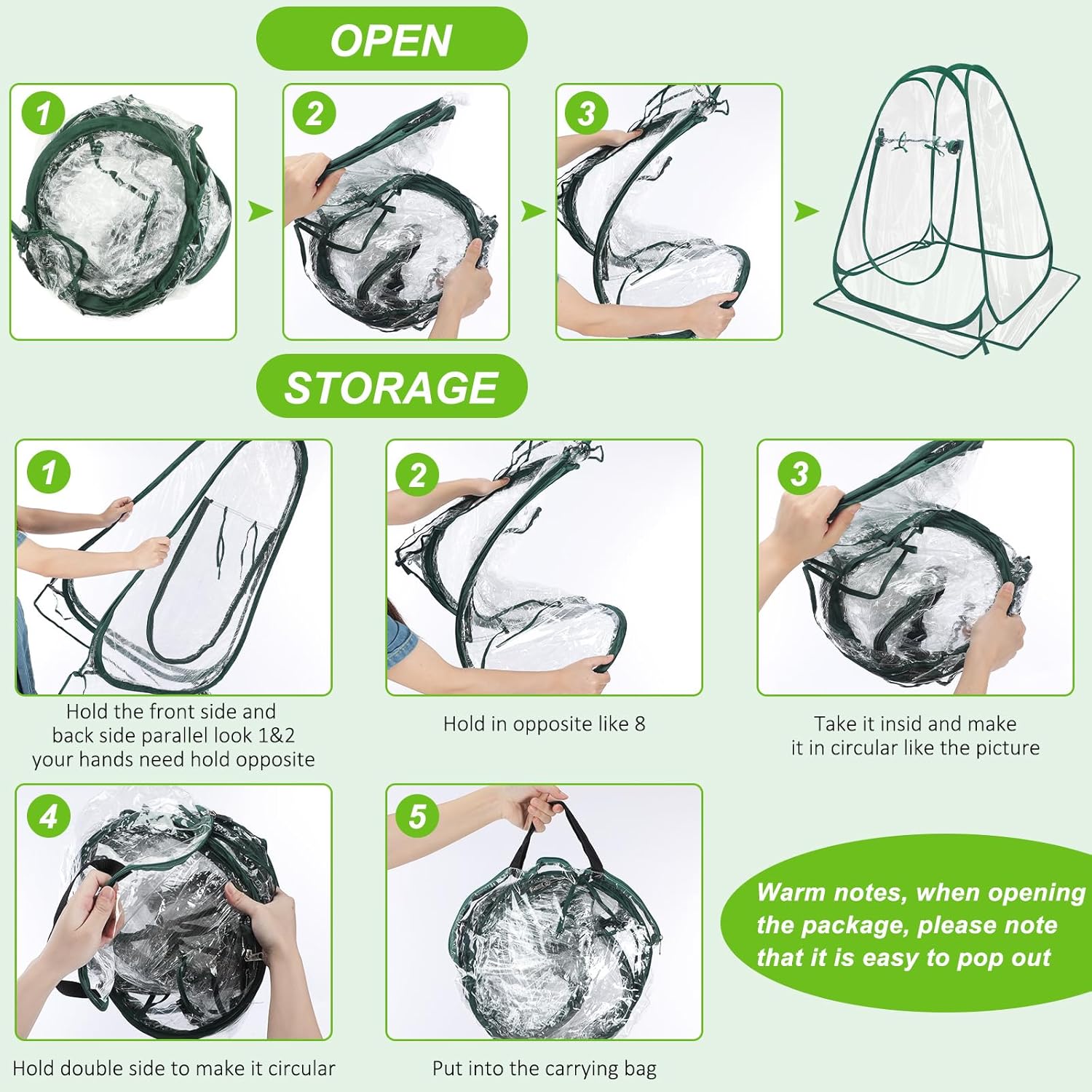 - Efficient Pop up Design: the greenhouse cover is fast to use and pops up in 2 seconds, no assembly required, and the transparent design lets the sun warm the soil, accelerates the growth process of luxuriant and healthy plants, lets you easily monitor the progress of plants without opening it, and has a zipper window that you can open on warm days; Warm notes, when opening the package, please note that it is easy to pop out
