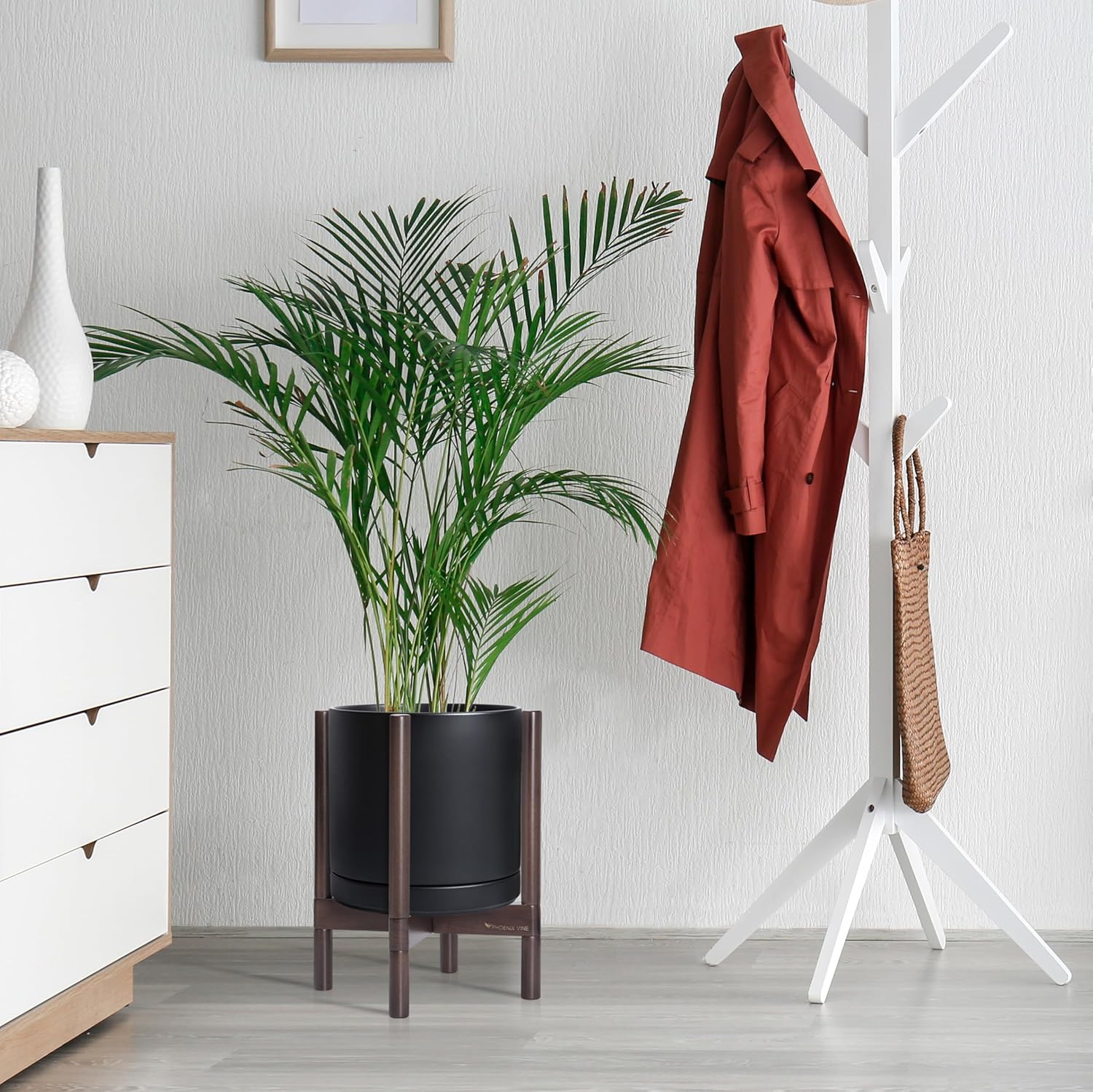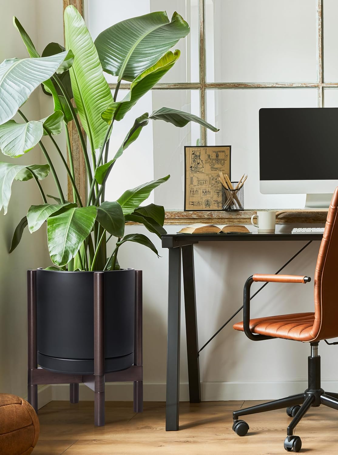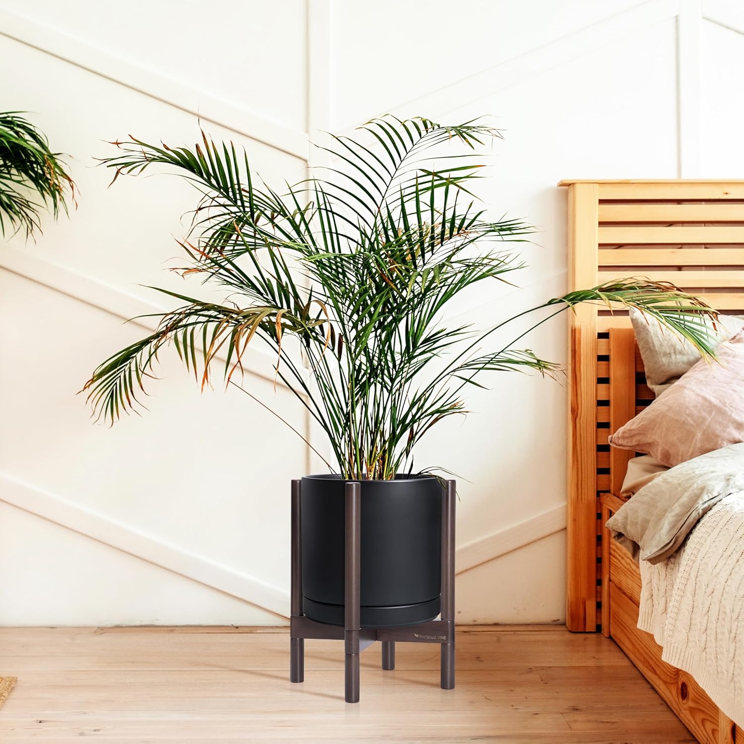 - A Complete Set: Mid-century ceramic planter, combined with a sculptural, solid wood stand that match perfectly together and looks great in anywhere.