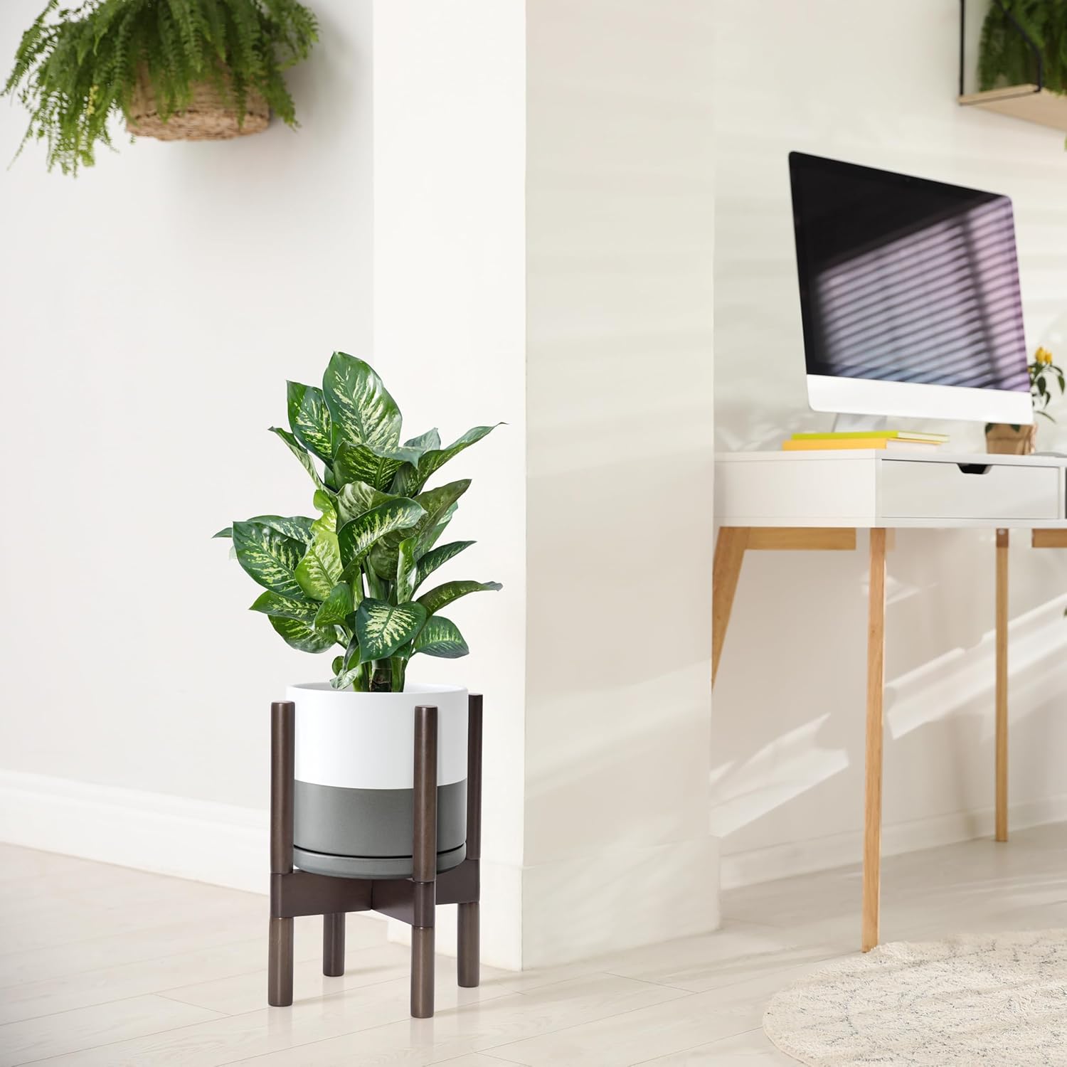 - Color : White/Grey Pot + Walnut Color Stand