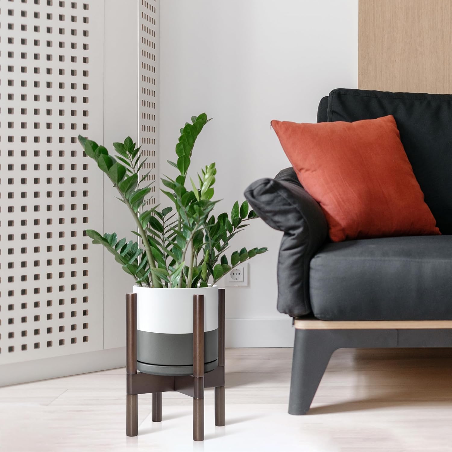 - A Complete Set: Mid-century ceramic planter, combined with a sculptural, solid wood stand that match perfectly together and looks great in anywhere.