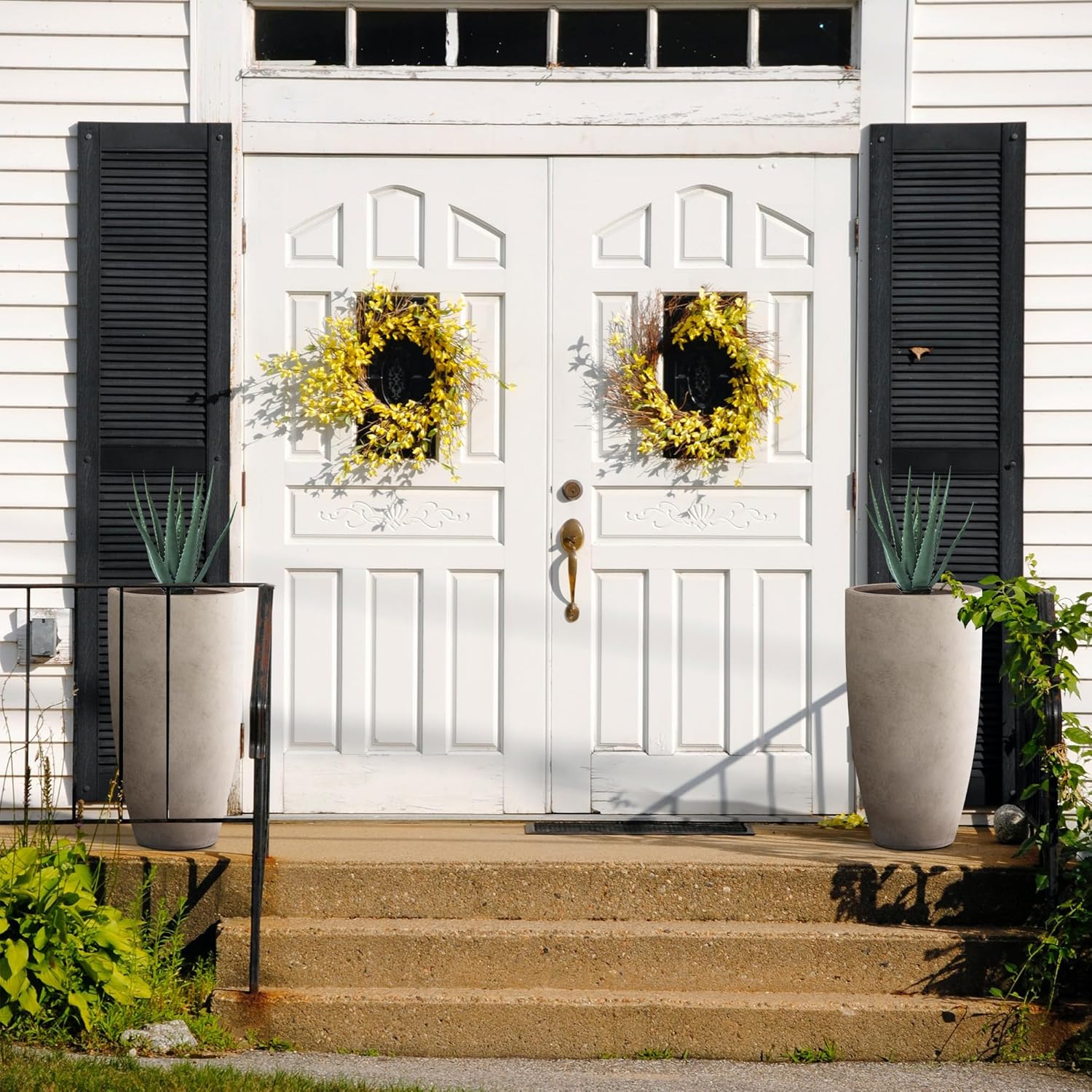 Kante 23.6" H Weathered Concrete Tall Planters (Set of 2), Large Outdoor Indoor Decorative Plant Pots with Drainage Hole and Rubber Plug, Modern Style for Home and Garden