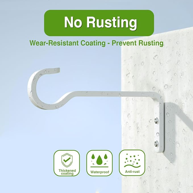 - 【Waterproof and Rustproof】 These hanging plant brackets have a reinforced exterior coating that prevents rust and corrosion even in humid environments, allowing them to remain as good as new when used outdoors.