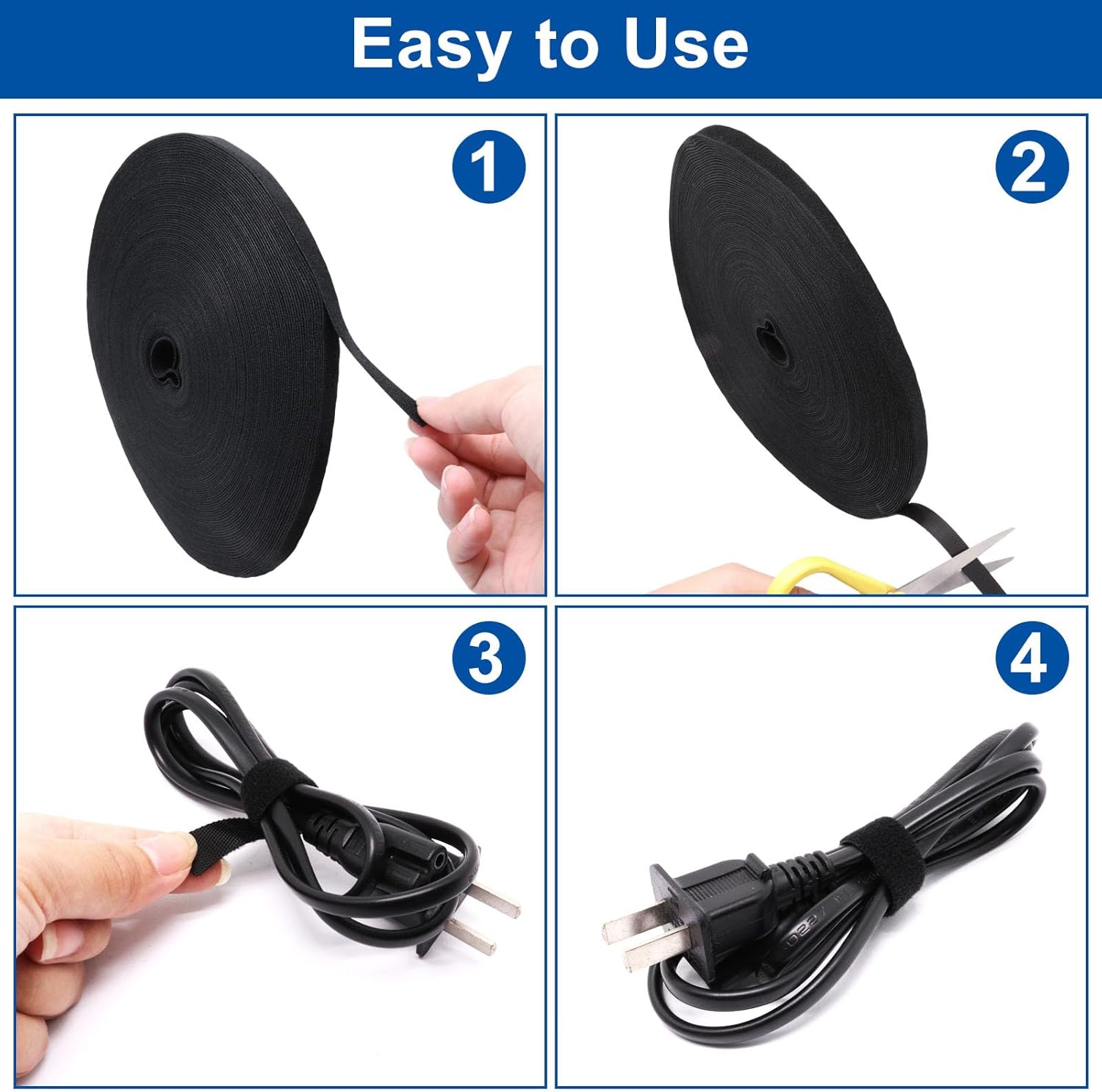 Plant Ties 131ft Feet, Plant Tape Reusable Nylon Hook and Loop Tape, Garden Strap for Climbing Plants Supports, Tree Ties for Flower Vine Tomato Branches, Cable Wire (Black)