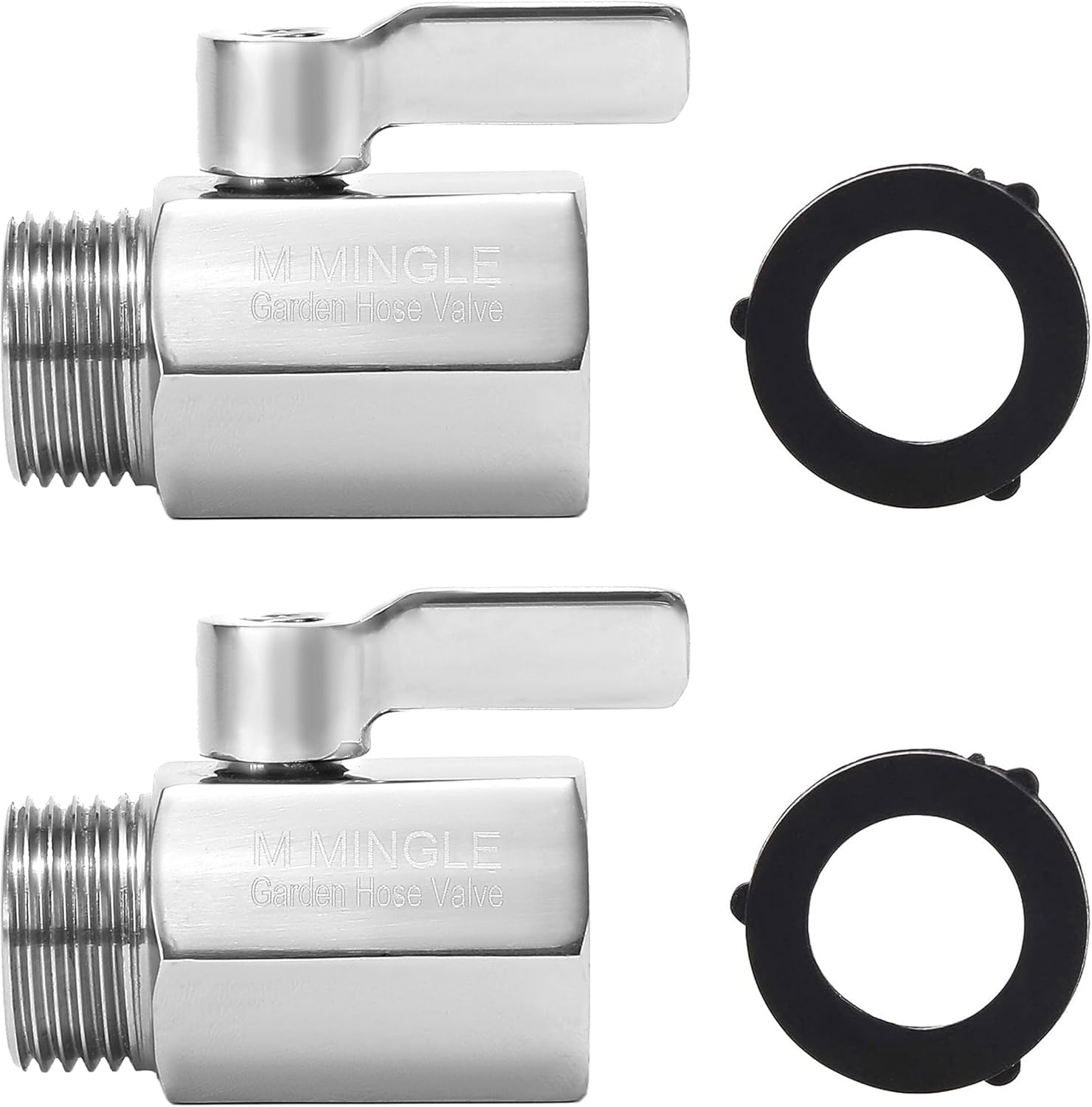 M MINGLE Garden Hose Shut Off Valve, Heavy Duty 304 Stainless Steel, 3/4 Inch, 2-Pack with 2 Hose Washers