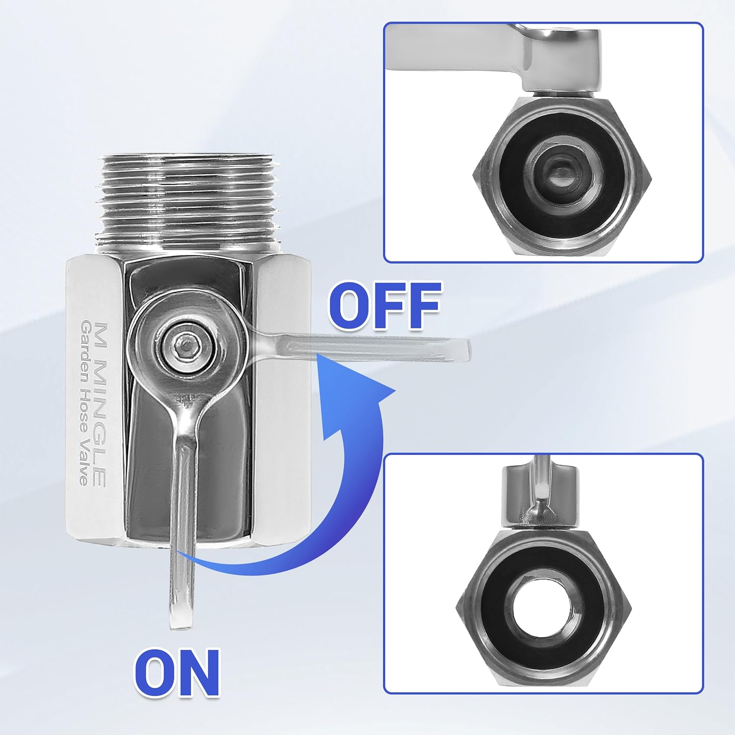 - The water hose cut off valve is designed for comfort with large ergonomic stainless steel handles. It is easy to adjust water flow at your fingertip.