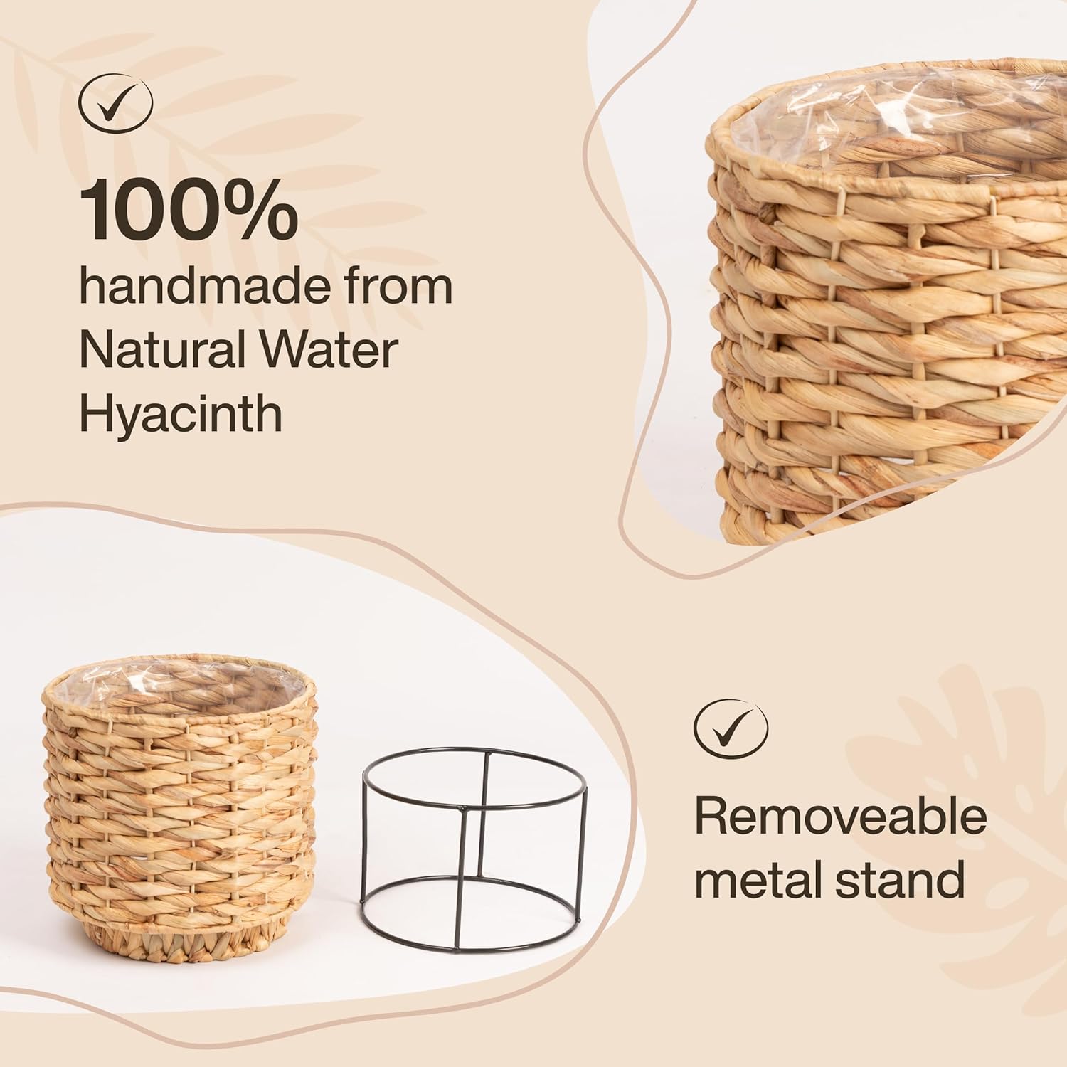 Set of 2 Water Hyacinth Planter Pot with Metal Stand - Indoor Plant, Flower, Succulent, Basket Planter, Decorative Pot Cover (Twisted)