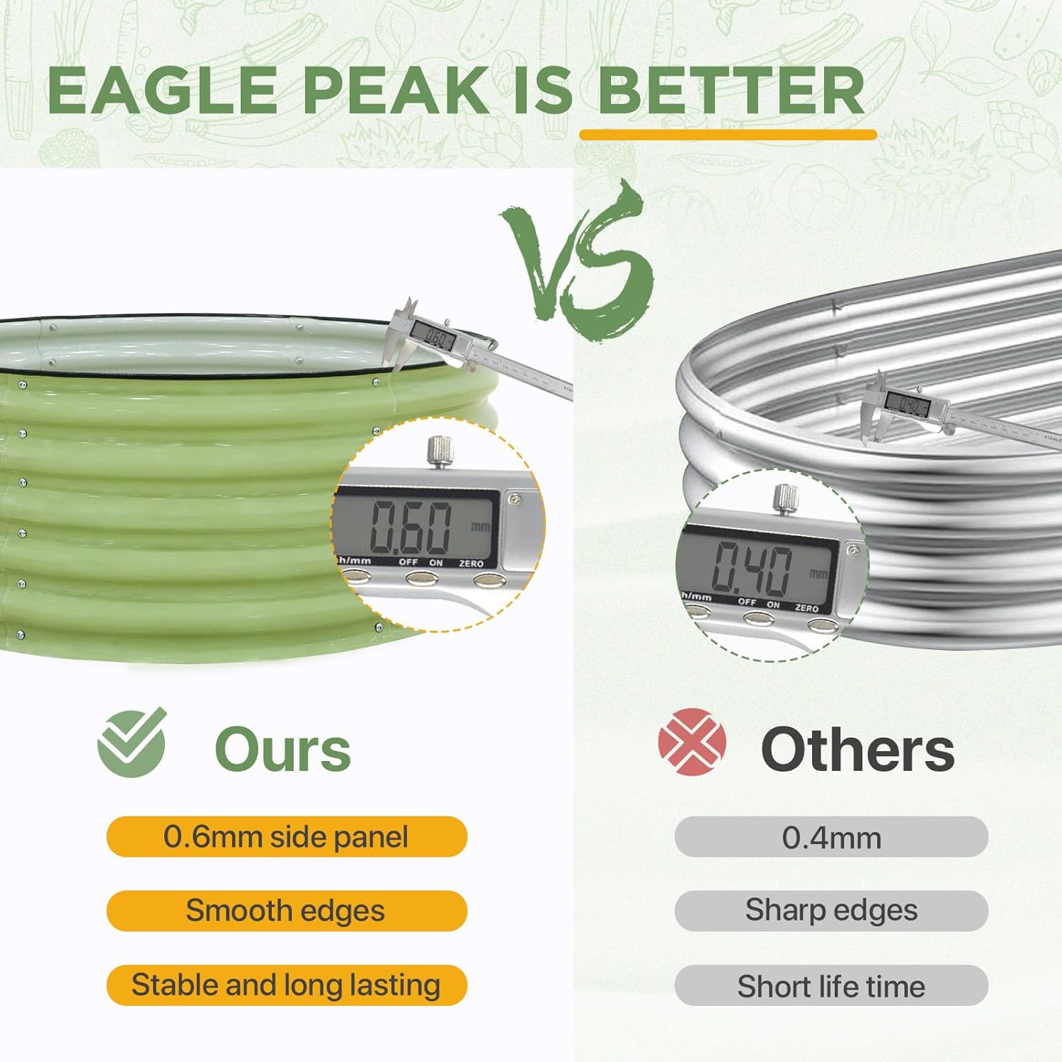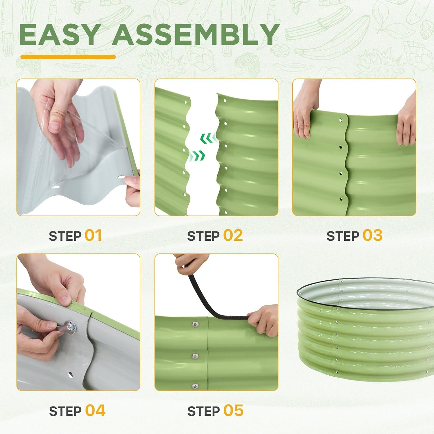 EAGLE PEAK 42'' Round 17'' Tall Raised Garden Bed Planter, Outdoor Galvanized Metal Planter Box for Vegetables, Flowers, Herbs, Olive Green