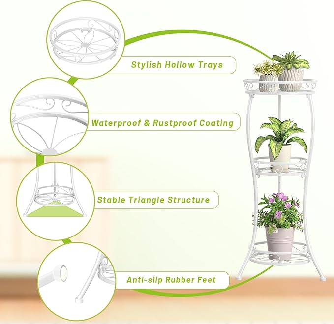 - 【Rustproof & Weather Resistance】: The well painted powder coated finish provides strong weather resistant for this flower stands for indoor plants. It can fit indoor or outdoor use, meet your gardening needs in balcony, living room or patio areas.
