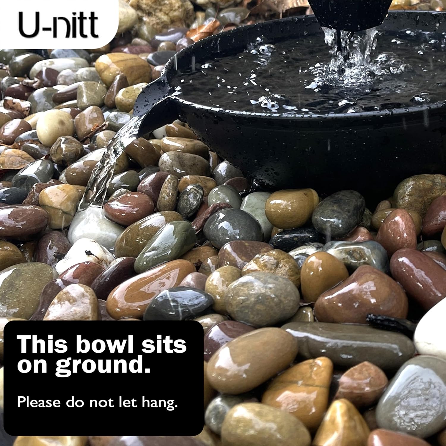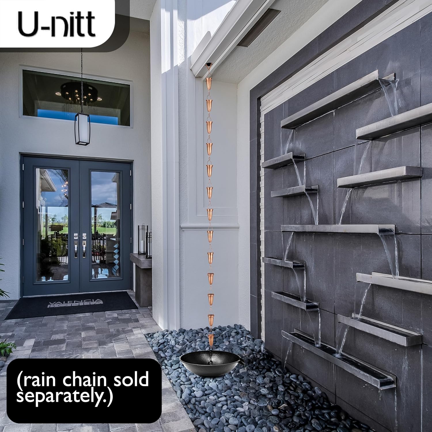- SHOP WITH CONFIDENCE - Enhance your rainwater management with this U-nitt rain chain anchoring basin, designed for an open system that not only secures your rain chain while collecting rainwater from the roof, but also creates an instant fountain display that transforms your rainy day experience. A stylish alternative in place of a rain barrel, which conceals rain water. Built for stability and beauty, it's the perfect way to complete your rain chain setup!