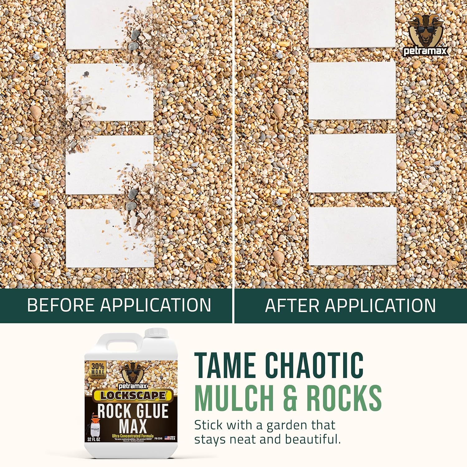 Petra Max Rock Glue for Landscaping, 32 Ounce - Ground Coverage & Pet Safe Mulch Glue for Rocks - Lockdown Gravel/Pebbles/Stones - Sticky Clear Gravel Binder & Decomposed Granite Stabilizer (50 Sq Ft)