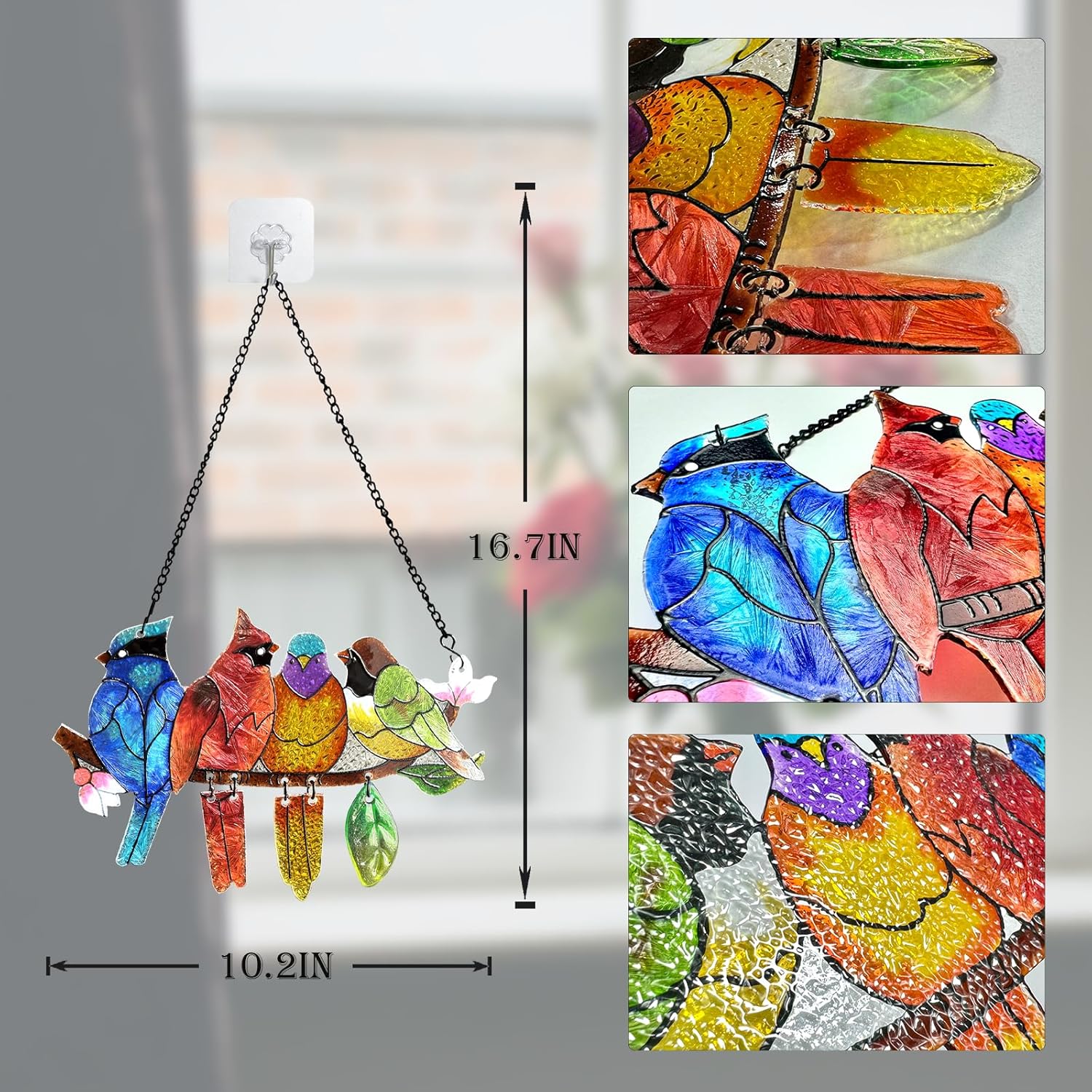 - Bird Lover Gift :This sun catcher a beautiful gift to bird lovers. This stained glass birds on branch not only makes a perfect memorial/grief gift, but also is a touching gift for other holidays.The stained glass suncatcher will be an awesome hanging decoration for a whole year.