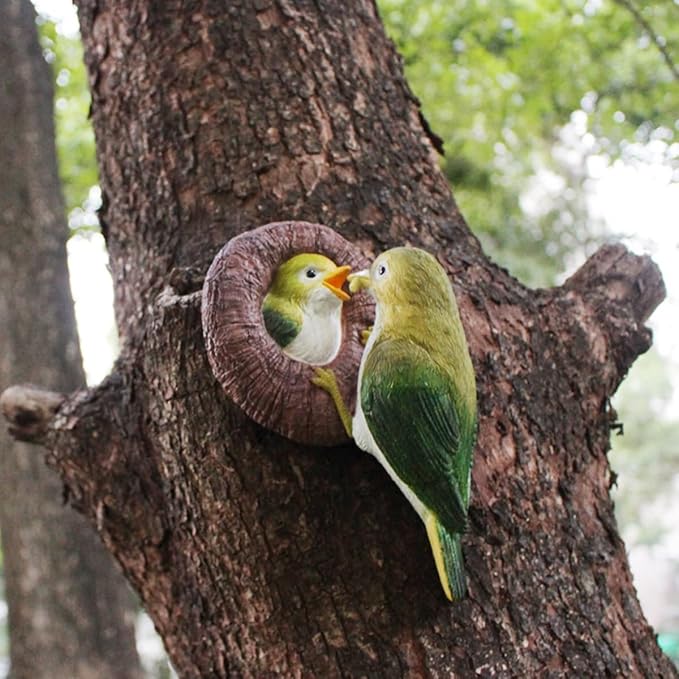 - 【Exquisite Appearance】The lifelike resin bird figurines tree decor outdoor adopts realistic design and hand graffiti. It has realistic details and textures, looks very realistic and super cute.