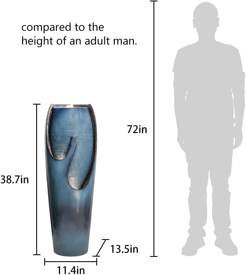 - 【Antique Look&Prefect Size】Turquoise cracked jar design adds a vintage yet modern and sophisticated look that complements various indoor outdoor paces. Measures the water fountain outdoor garden with ideal size, 11.4x13.5x38.7inches(L x W x H), to fit almost any indoor outdoor areas. The waterfall fountain outdoor indoor modern can serve as a captivating and elegant addition to your indoor or outdoor decor, adding both visual appeal and a soothing ambiance.