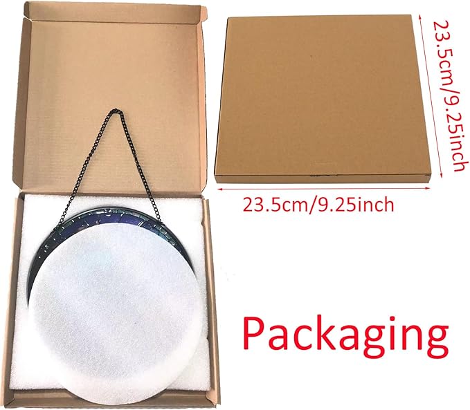 - 【Product Size】Stained glass hanging size is 20*20cm/7.87*7.87inch,equipped a chain,the size is 34cm/13.4inch. You can hang it anywhere you want, window or courtyard. This is a very pretty suncatcher.