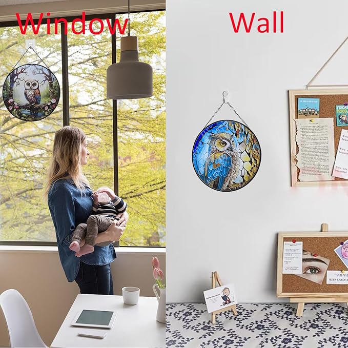 - 【Easy to Use】This stained window hanging painted a owl, vivid and full of vitality. Ideal for those who love pastoral and nature, and seek a return to original nature! You can hang it in the position you want to decorate,it's a great home decor.