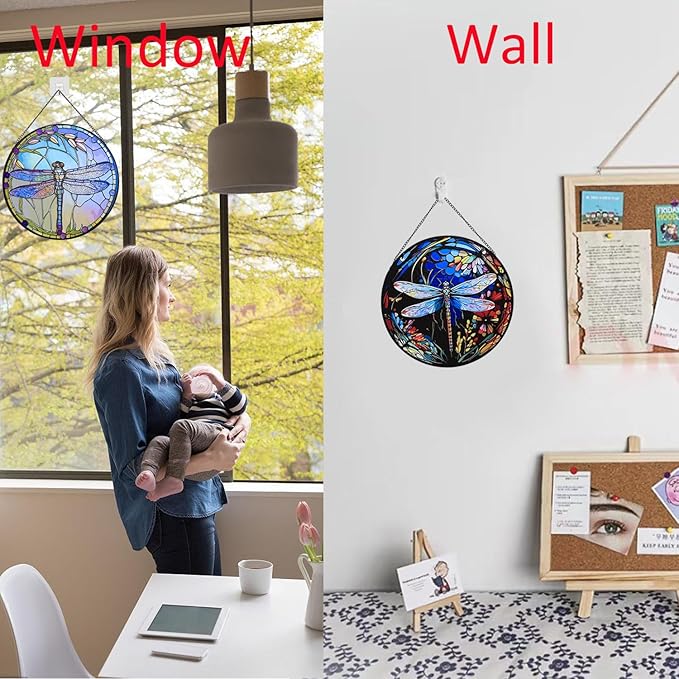 - 【Exquisite Gift】The dragonfly suncatchers for hanging stained glass is a lovely gift for your friends, family, lover, etc. Our dragonfly wall decor would be a great embellishment to your home.Suitable for Thanksgiving Day gifts, Christmas gifts,Valentine's Day gifts, Easter gifts, Mother's Day gifts, and other holiday gifts.