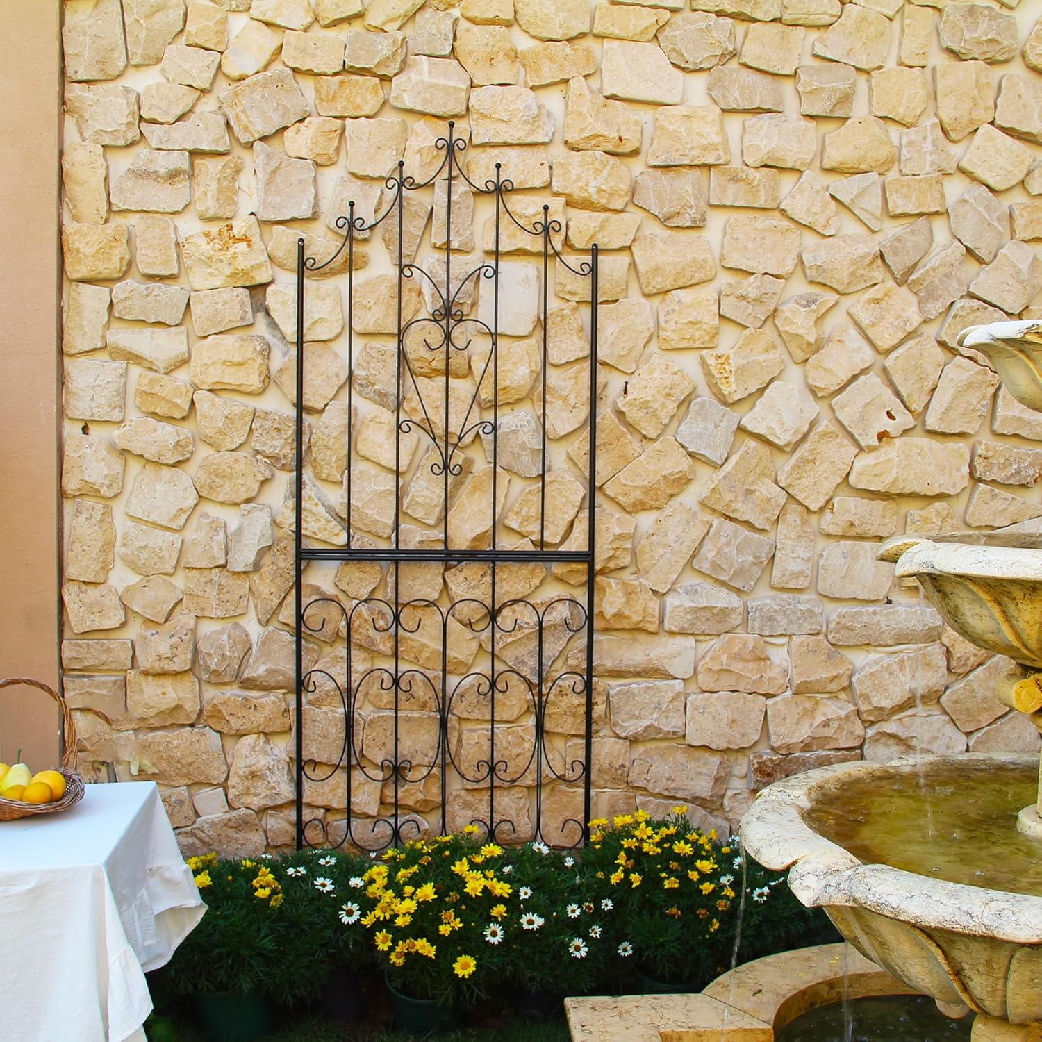 - Powder-coated Finish: Weather-resistant and able to stand independently or be secured to a wall, this garden trellis adds a touch of elegance to your garden, even without plant adornment. Its black powder-coating, coupled with a faux hand-rubbed finish, provides an appealing rustic look. Ideal for supporting flowering vines in summer and adding architectural interest to your lawn decor in fall or winter.