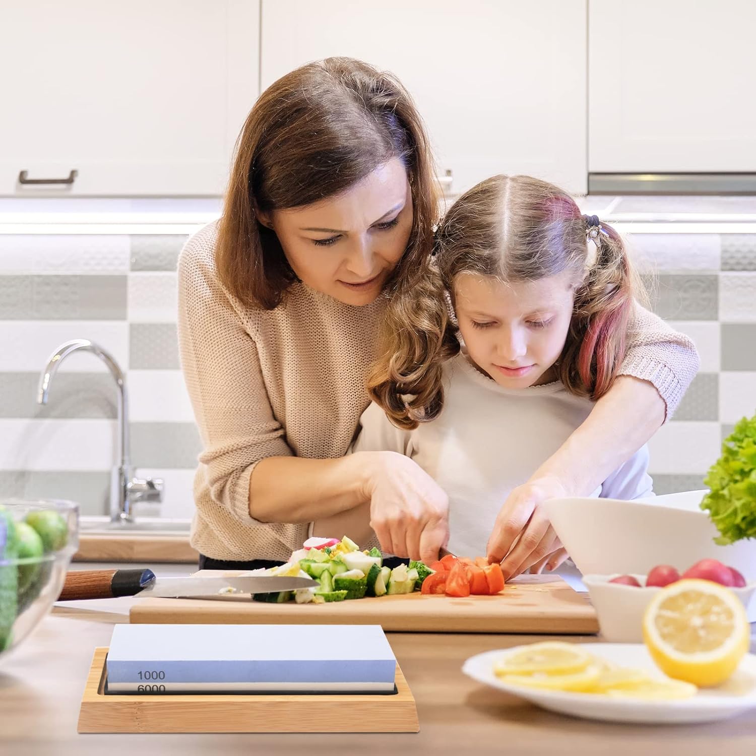- Precision Sharpening:This sharpening stone set is crafted with high-quality materials, ensuring durability and long-lasting performance of the sharpening stones. It can quickly help you achieve professional-level sharpness for your knives. The dual-sided design of the sharpening stone includes 200/800 and 1000/6000 grits, making it perfect for both coarse sharpening and fine sharpening