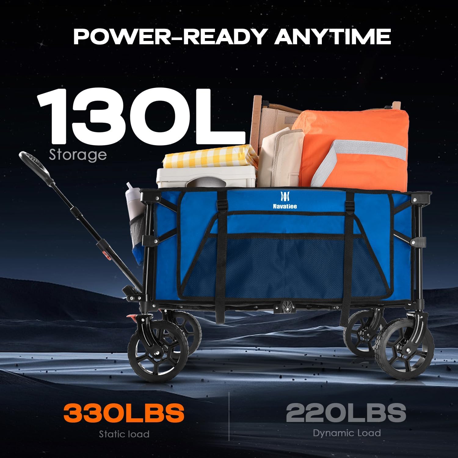 - RELIABLE HELPER FOR OUTDOOR CAMPING : A well-built and versatile wagon that is useful for a wide range of applications. The Navatiee wagon with brakes is a model you can’t miss. This is definitely the perfect wagon for daily life. And use it in one touch with a simple and speedy setup within the one minute to enjoy your outdoor trip with ease. At such a large capacity, the wagon will give you more surprise, giving you more convenience and power all at once.