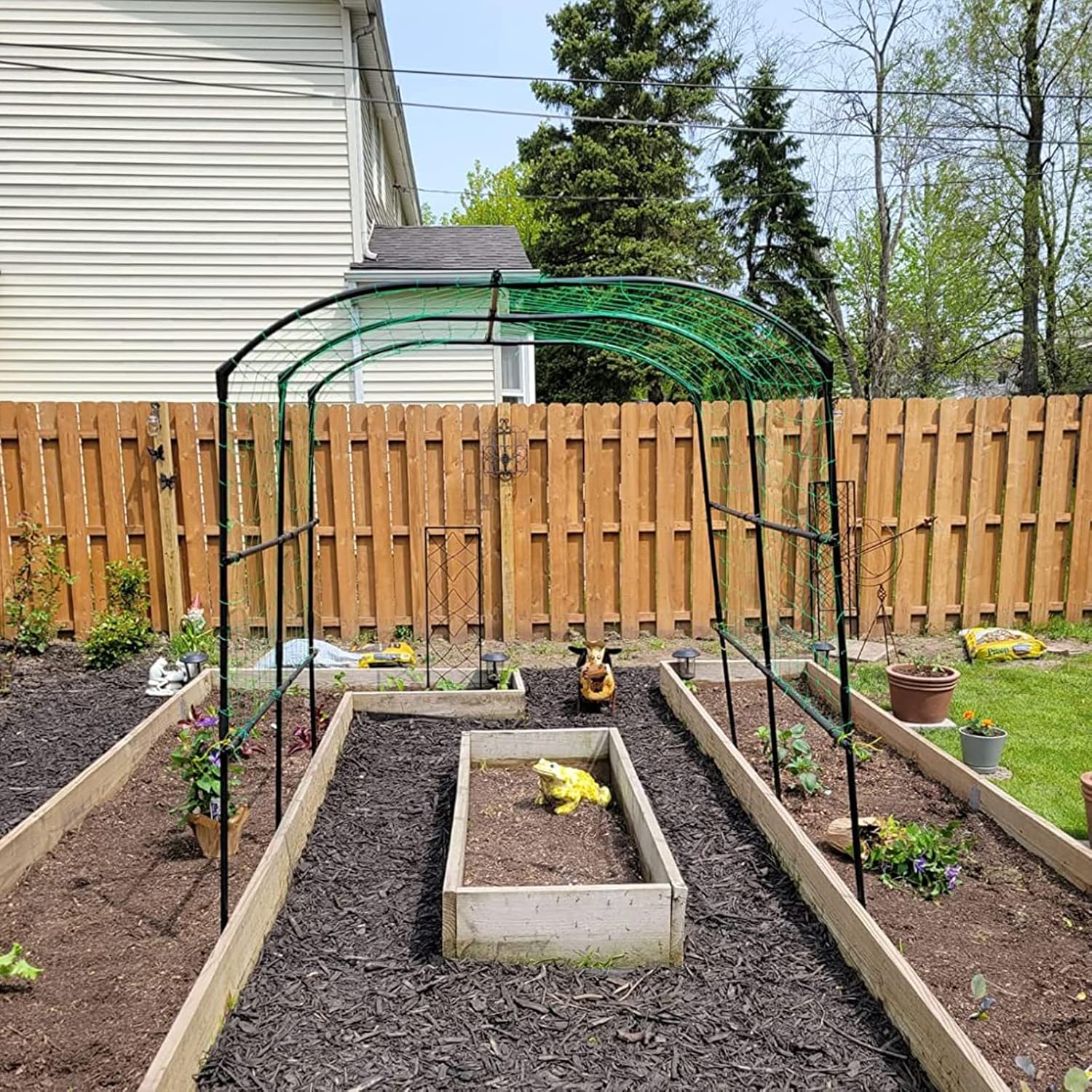 - VERTICAL GARDENING:Greatly saves space in the garden. Perfect height to walk underneath, harvest vegetables and fruits, provide you with shade, etc., Ideal for planting grapes, cucumbers, peas, zucchini,flowers and other climbing plants. Highlight the gorgeous beauty of your yard.