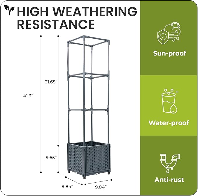 - Durability: Crafted to withstand diverse weather conditions, our raised garden bed planters are UV-resistant, fade-resistant, and built for longevity. Constructed from reinforced polypropylene and sturdy alloy steel for durability. The assembly parts of the tomato plant cage fit together seamlessly, ensuring a sturdy and stable structure that won't easily come apart.