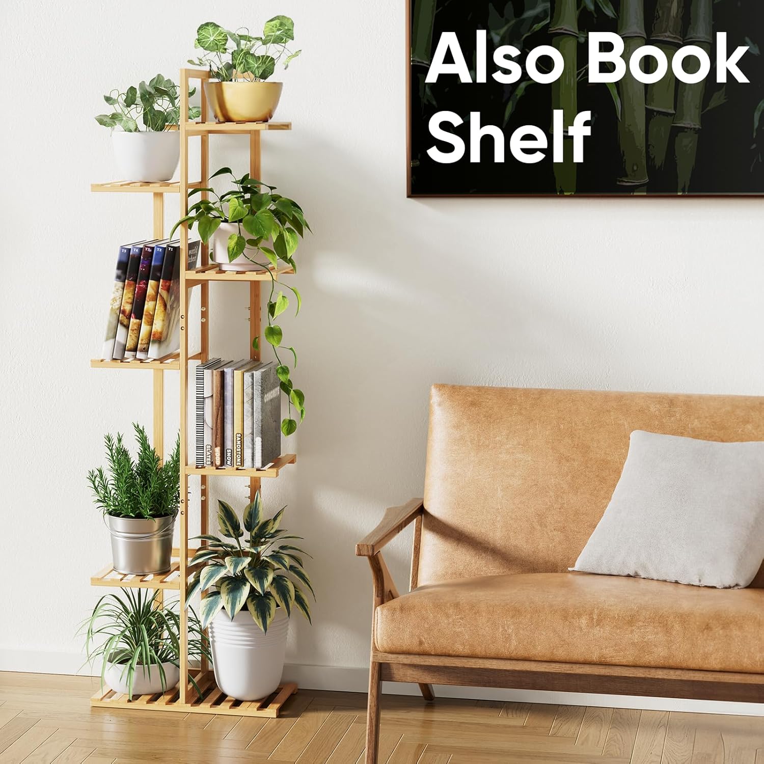 ROSSNY 55 Inch Tall Plant Stand Indoor, 7 Tier 8 Potted Bamboo Plant Stands for Indoor Plants, Corner Plant Stand, Plant Shelf For Indoor, Tiered Plant Stands, Planter Holder for Multiple Plants Indoor, Natural