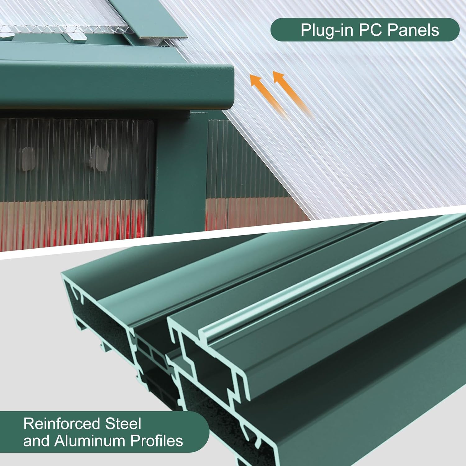 - Durable Panels: These 4mm twin-wall polycarbonate panels are nearly unbreakable. They allow 70% light transmission for optimal plant growth while blocking over 99.9% of harmful UV rays. Perfectly sized for your backyard, terrace, or garden, this greenhouse is great for casual gardeners and flower enthusiasts, providing ample space for plant preparation and growth.