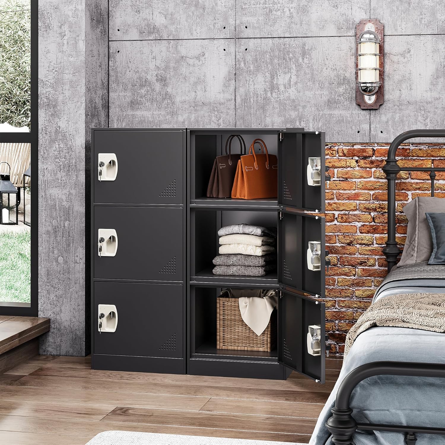 - 【Large Storage Capacity】: Metal locker 36.4''H x 15''W x 17.7''D. Equipped with 3 separate compartments to meet your storage needs for items of different sizes and meet most of your daily needs. Store handbags, coats, etc.