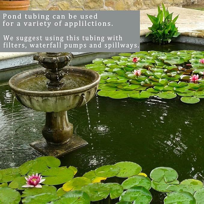 - The pond tubing is made quality PVC reinforced with an integral helix of rigid PVC, durable, lightweight, anti-aging, kink-free, high abrasion resistant and excellent corrosion-proof, is perfect for any project that requires moving water.