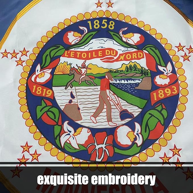 - 【High Quality Embroidery】MN Flag 3x5 feet, visible from the front and back, with 19 stars all around,We use tough embroidery to sew it, the embroidered Minnesota flag will catch all eyes when displayed.