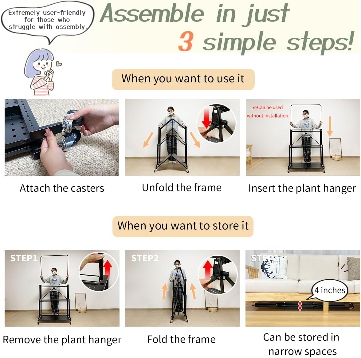 - [Foldable, Quick Assembly] Due to the absence of any complex conventional assembly, even first-time users of the plant stand can easily get started with a simple three-step process. With a folded thickness of only about 4 inches, it can be conveniently stored in gaps when not in use.