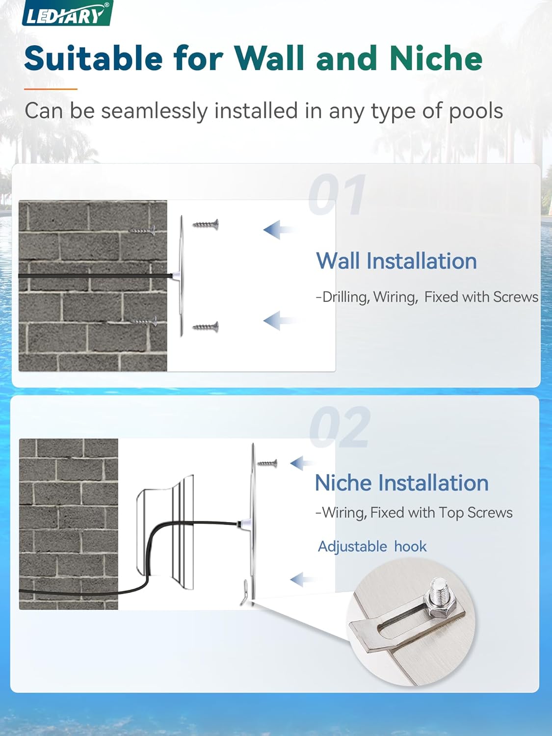 - Solid and sealed light: Say goodbye to annual bulb replacements! Lediary 6 inch swimming pool lights for inground pool offers a hassle-free solution by directly replacing the entire outdated pool lighting system, IP68 fully sealed waterproof design, saving you the trouble and cost of yearly bulb changes.NO ring,NO housing, NO gasket