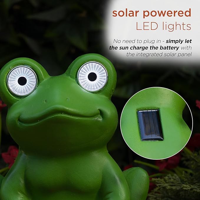 Alpine Corporation ZEN390SLR-L Frog on Mushroom Statue with LED Lights, Solar-Powered LED Frog Garden Statue, 24" H, Green
