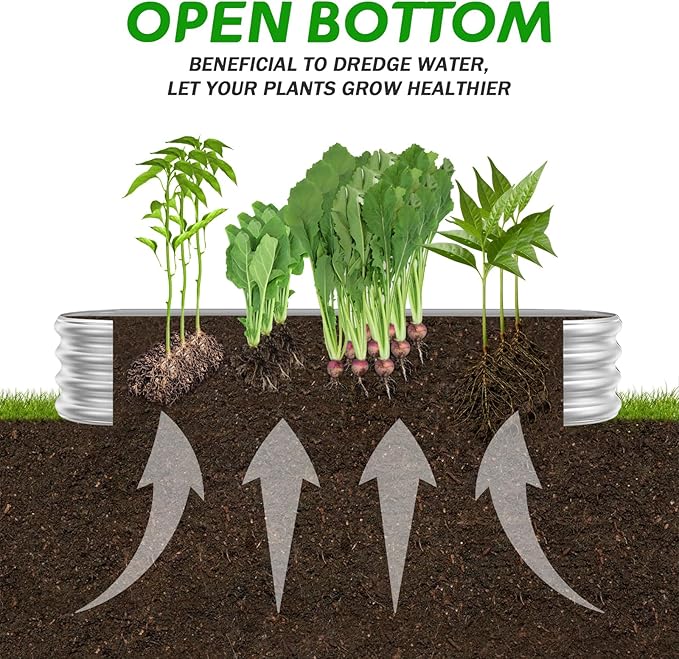 - 【Open Bottom】This metal raised garden bed is designed with an open base. It is good for drainage, and plants roots won't be sick from excessive water. Also, plant roots can absorb better nutrition from the soil, and grow more healthy.