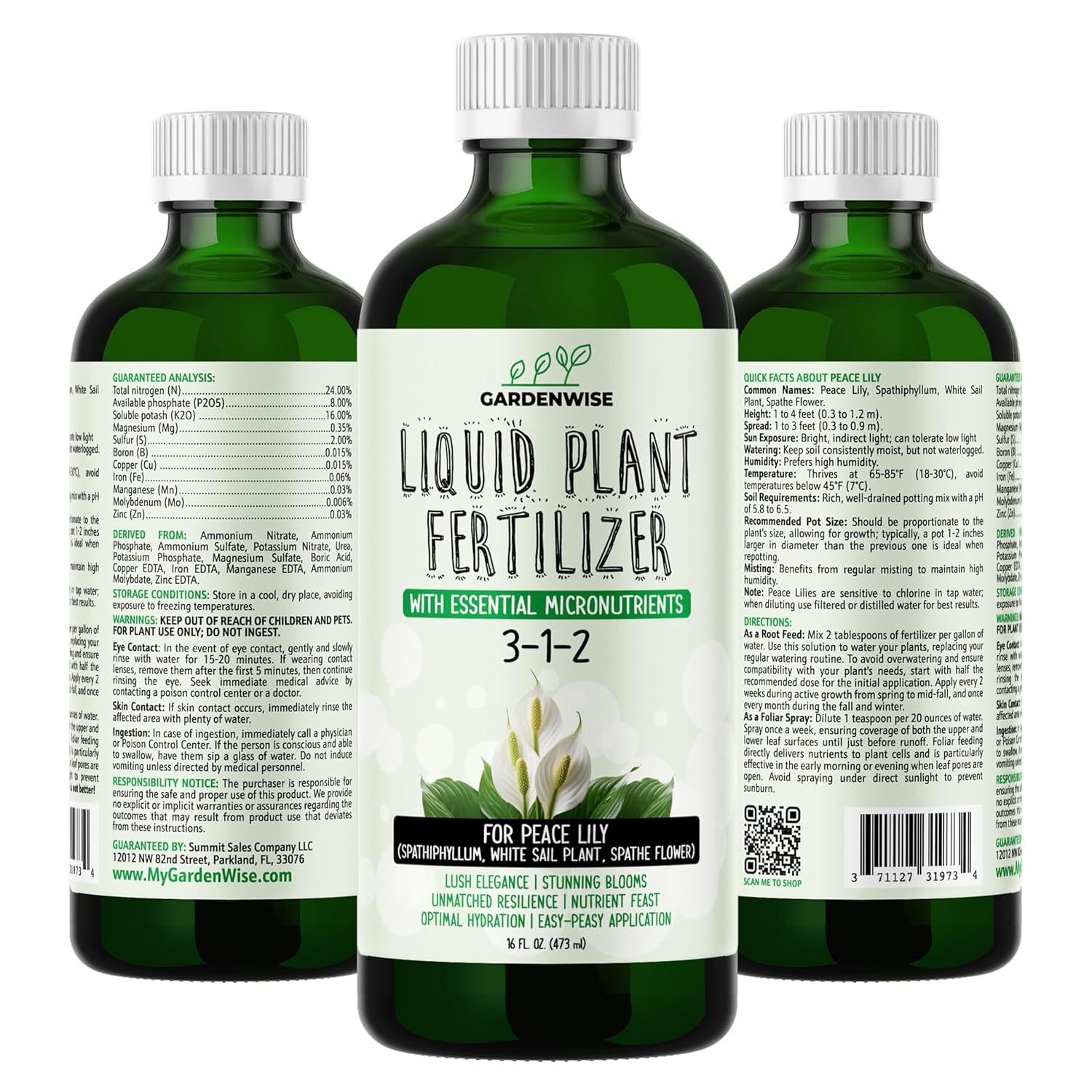 Peace Lily Fertilizer: 3-1-2 Liquid Fertilizer with Essential Micronutrients - The Ultimate Food for Spathiphyllum, Perfect for Indoor Plants (32 OZ)