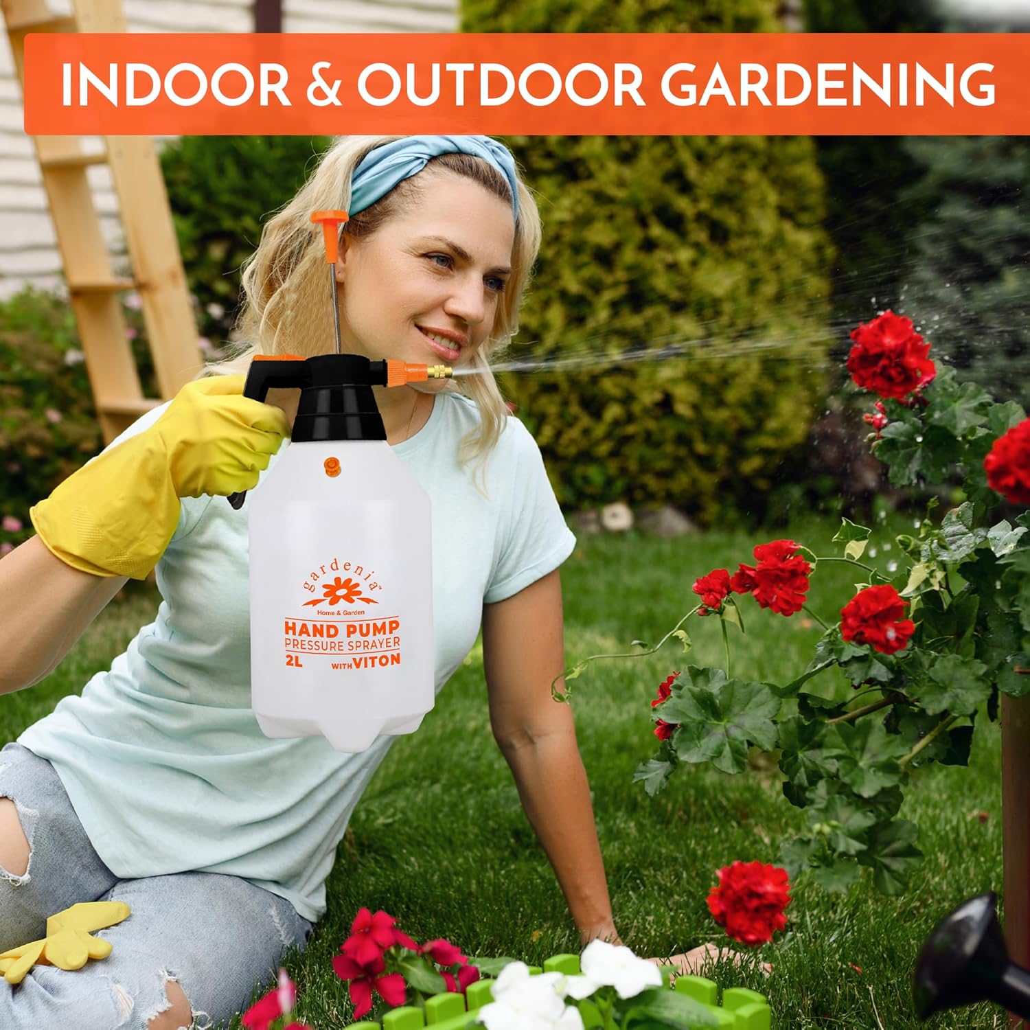 Handheld Pumping Sprayer Viton Seals Sprayers in Lawn and Garden, Spray Bottles for Cleaning Chemical Sprayer Continuous Spray Bottle for Plants 2L Plus (0.53 Gallon/68oz)