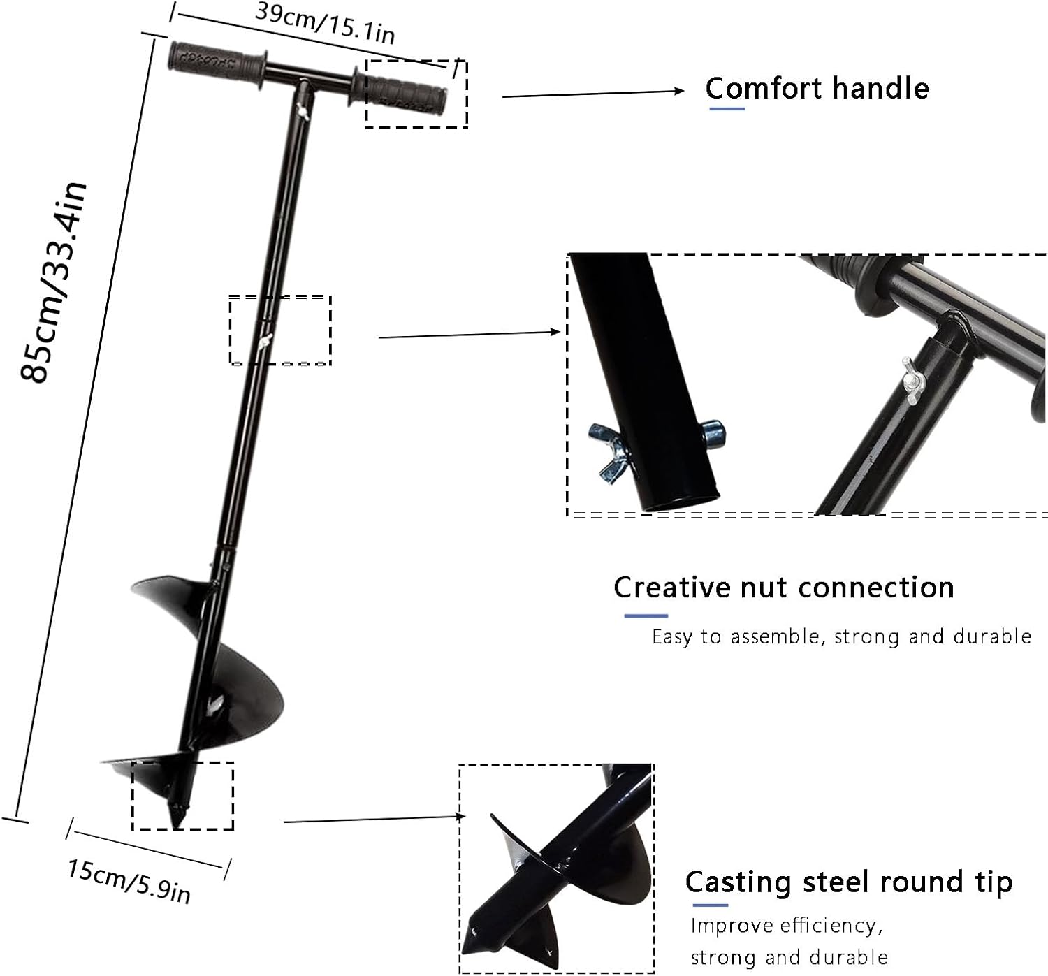 - Size:Compost turning tool is 33.5" tall overall, and the spiral section is 5.9 inch wide and 7 inches tall.
