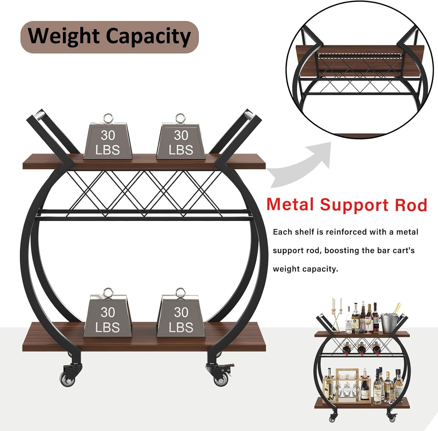 LVB Modern Gold Bar Cart, Industrial Rolling Serving Wine Cart with Wine Rack, Coffee Liquor Drink Cart with Storage and Wheels, Wood and Metal Kitchen Microwave Beverage Cart for Home, Walnut