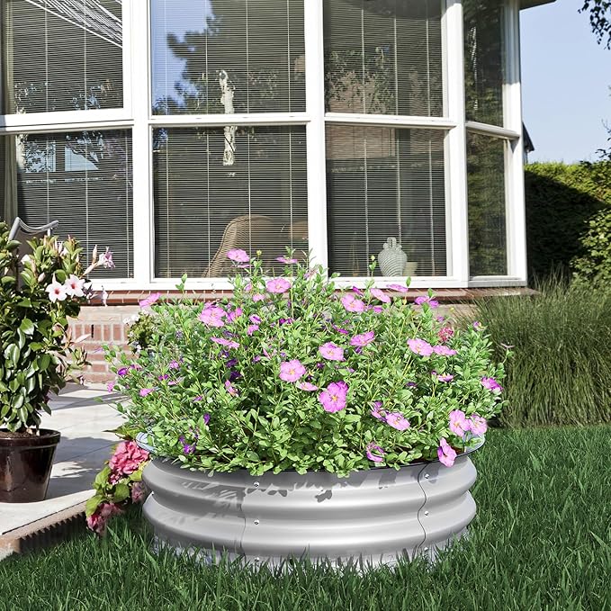 BPS Metal Raised Garden Bed, 2.5FT Diameter Galvanized Planter Raised Garden Boxes for Flower Planters, Vegetables Herb